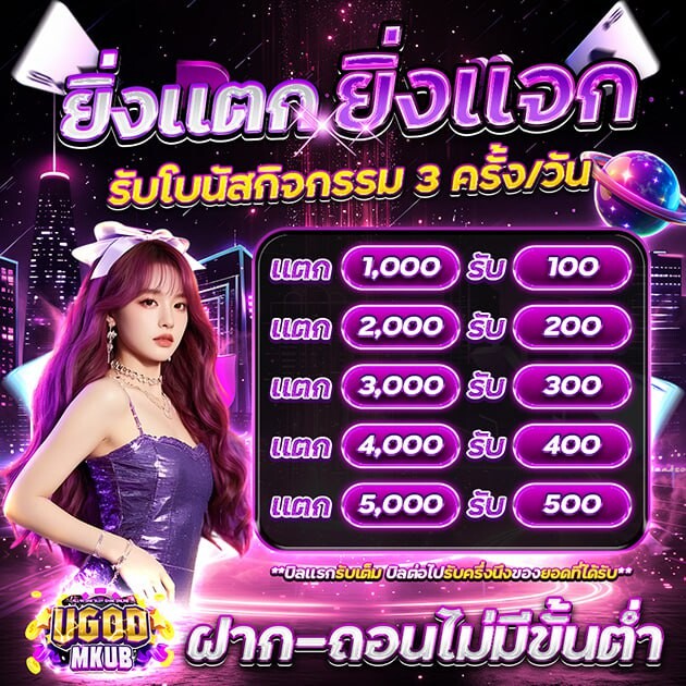 UGODMKUB สล็อตออนไลน์และคาสิโนออนไลน์ สมัครสมาชิกครั้งเดียวสามารถเล่นสล็อตออนไลน์เกมยิงปลาคาสิโนออนไลน์มากกว่า 100 เกมโดยตรงจาก 16 ผู้ผลิตเกมชั้นนำทั่วโลก ส่งตรงถึงมือถือของคุณทั้งระบบ iOS และ Android รวมถึงคอมพิวเตอร์